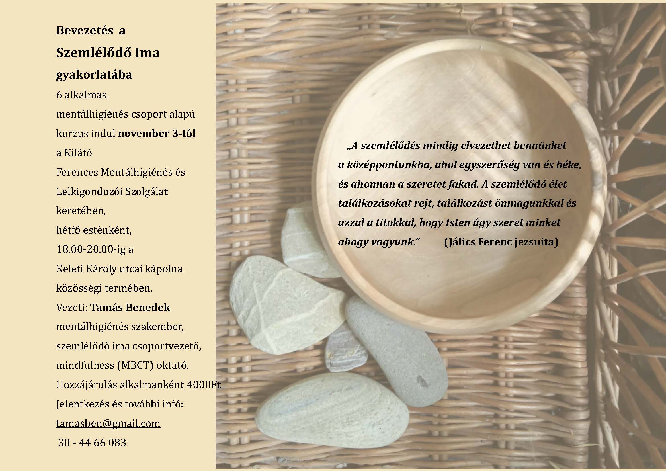 Az első alkalom: október 10. (a további péntekeket ekkor egyeztetjük a csoporttal)